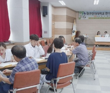 | 대구한의대(총장 변창훈) 경북북부&시지고동문연합회(지도교수 구세광)는 한의사, 학생 등 25명이 참여한 가운데 지난 27일부터 3일간 영순면 천마문화센터에서 300여 명의 지역 어르신 및 소외계층에게 침, 부항, 뜸 등 사랑의 하계 한방의료 봉사활동을 펼쳤다.