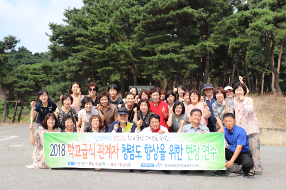 이번 연수는 평소 학교급식 위생·안전에 최선을 다한 교직원들의 사기를 진작하고 청렴 실천 의지를 다지기 위해 실시됐으며, 다양한 체험활동 및 우수사례 발표를 통한 실무 능력을 향상 시키는 기회가 되었다.