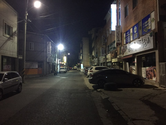 | ↑↑ 평일 오후 9시경, 모전동 먹자골목에 문을 닫은 상가가 많고 오고가는 사람도 거의 없다. |