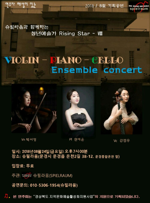 오는 24일(금) 오후 7시 문경읍에 위치한 슈필라움(관장 신기철)에서는 「청년예술가와 함께하는 Rising Star』 8월 기획공연이 다채롭게 진행될 예정이다.