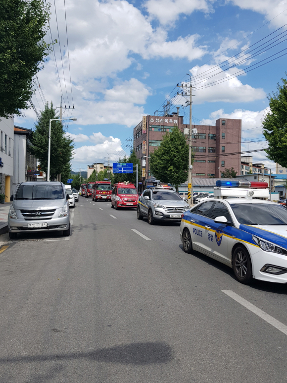 문경소방서(서장 이진우)가 8월 22일 14시 신흥시장 일원에서 소방공무원, 시청공무원 및 경찰공무원, 점촌여성의용소방대원, 지역주민 등 50여 명이 참석한 가운데 화재발생시 골든타임 확보와 원활한 화재진압을 위한 소방차 길 터주기 훈련 및 캠페인을 실시했다.