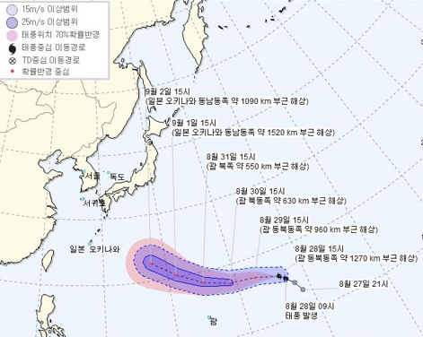 기상청 관계자는 "아직 태풍 발생 초기라 우리나라에 미칠 영향에 대해선 전망하기 이르지만, 한반도 주변 접근 시 북태평양 고기압 등 기압 배치에 따라 변동성이 크다."고 말했다.