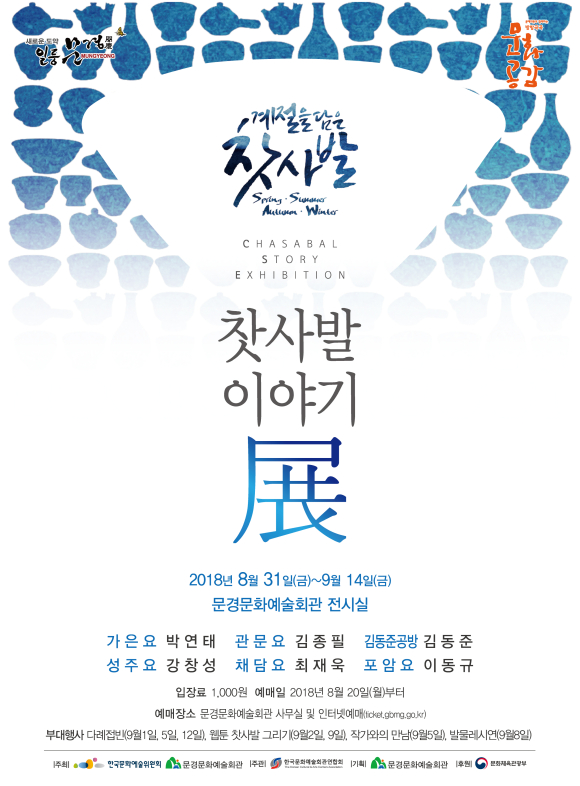 문경문화예술회관은 작년에 이어 두 번째로 방방곡곡 문화공감사업의 일환으로 기획전시(찻사발 이야기-계절을 담은 찻사발)를 8월 31일부터 9월 14일까지 보름 동안 문화예술회관 전시장에서 개최한다.