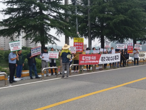 | ↑↑ 새문경시민연대 회원들이 "고윤환 문경시장과 관련 공무원 원칙수사, 엄중처벌"을 외치며 집회를 하고 있다. |