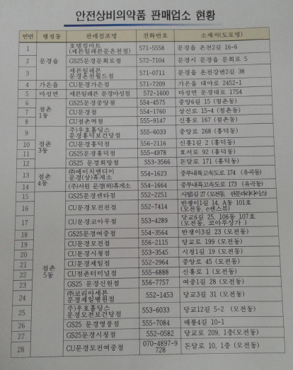 안전상비의약품 판매업소로 신고된 28개소(24시간 운영하는 편의점)에서 해열진통제, 소화제, 감기약, 파스 등 13가지 안전상비의약품을 구입