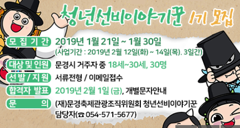 (재)문경축제관광조직위원회, 청년선비이야기꾼 1기 참여자 모집