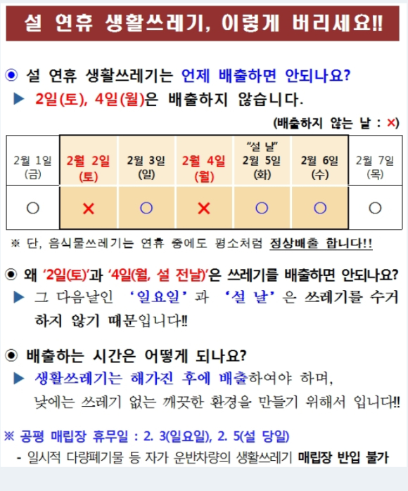 설 연휴기간 생활쓰레기 관리대책 발표