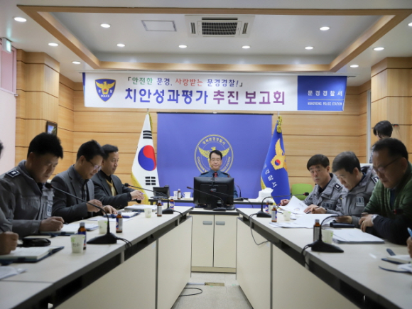 문경경찰서(서장 박명수)는 지난 2월 11일 회의실에서 과장, 파출소장, 계·팀장 등 중간관리자 38명이 참석한 가운데 ‘2019년 첫 치안성과평가 향상보고회’를 개최했다.