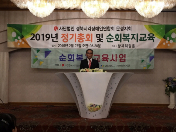 사)시각장애인연합회 문경지회(지회장 김영호)는 27일 오전 10시 30분 황제웨딩홀 3층에서 ‘2019년 정기총회 및 순회복지교육’을 개최했다.