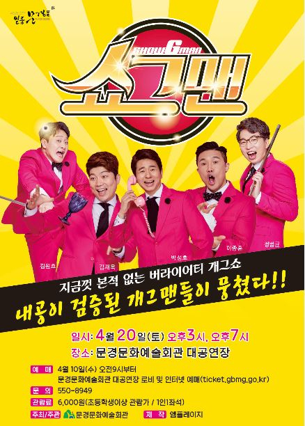 세상의 모든 개그쇼 ‘쇼그맨’이 오는 20일 오후 3시, 7시 문경문화예술회관 대공연장 무대에서 펼쳐진다.