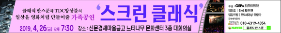 전문 연주자로 구성된 클래식 한스푼(대표 고경남)과 TDC앙상블(음악감독 금성빈) 공연단체가 4월 26일 금요일 저녁 7시 30분 신문경새마을금고 느티나무 문화센터에서 ‘스크린 클래식’ 가족공연을 상영한다.