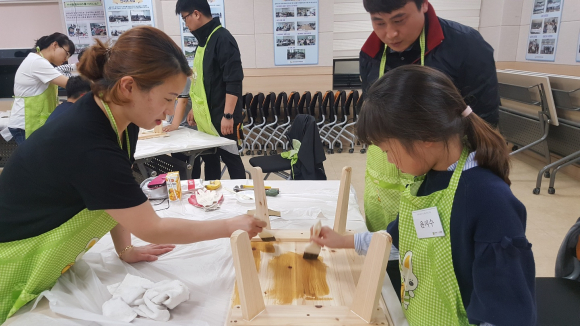 체험에 참가한 한 가족은 “맞벌이로 인해 가족과 함께할 시간이 부족했는데 이번 체험을 통해 가족들과 원목탁자를 만들고 많은 이야기를 나누면서 가족과 함께 소통할 수 있는 자리가 마련되어 좋았다”고 말했다.