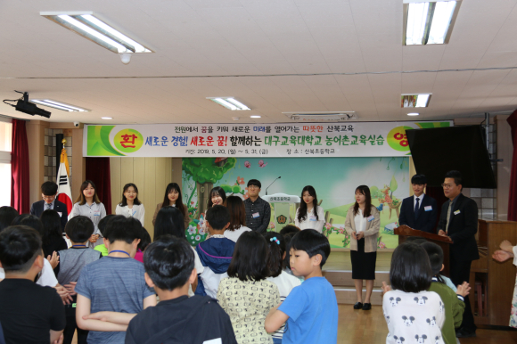 산북초등학교(교장 최정애)는 2019학년도 대구교육대학교 농어촌 교육실습학교로 지정을 받아, 9명의 교육 실습생들이 5월 20일부터 31일까지 2주간 농어촌 교육실습을 운영한다.
