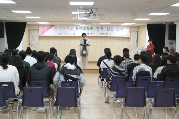 문경유치원(원장 우윤숙)은 지난 27일 문경대학교 유아교육과 문선영 교수와 현장실습을 앞둔 유아교육과 학생 50여명이 참석한 가운데 본원 대강당에서 '지역교육공동체 협력 행사'를 가졌다.