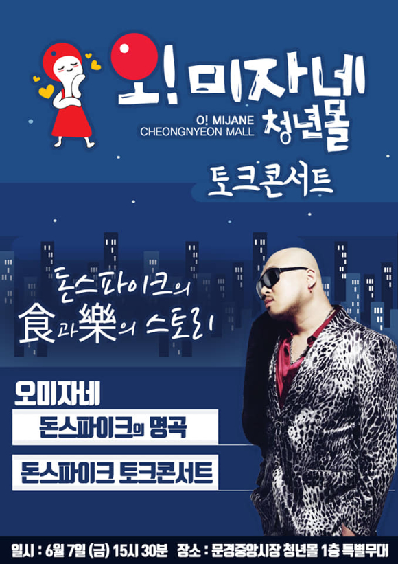 ‘오! 미자네 청년 몰’이 오는 7일 오후 3시 30분 문경중앙시장 청년몰 1층 특별무대에서 ‘돈 스파이크 토크 청춘콘서트’를 개최한다.