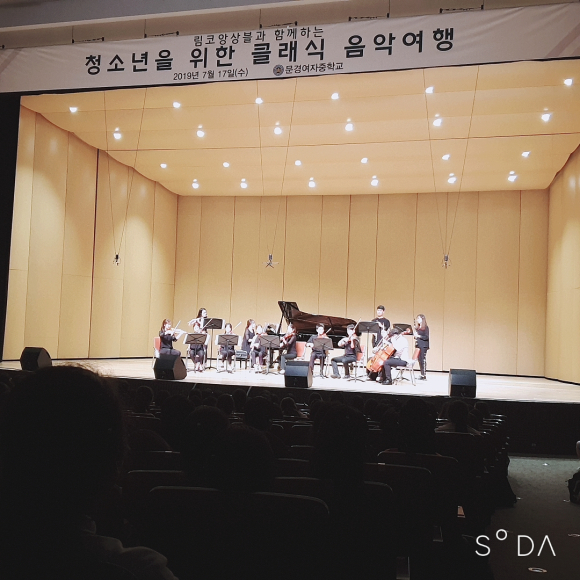 문경여자중학교(교장 전태식)는 지난 7월 17일 오후 2시 30분부터 전교생과 점촌고등학교 2학년 학생들을 대상으로 문경 문화예술회관에서 림코앙상블을 초청하여 ‘청소년을 위한 클래식 음악여행’공연을 관람했다.