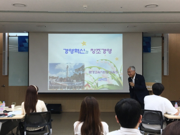이번 워크숍에서는「희망찬 미래를 여는 따뜻한 문경교육」구현을 위하여 전문역량을 강화하고, 창의적 마인드 창출 및 공직자로서의 자긍심을 고취시킬 수 있도록‘행사·의전방법’에 대하여 교육장의 특강이 실시했다.