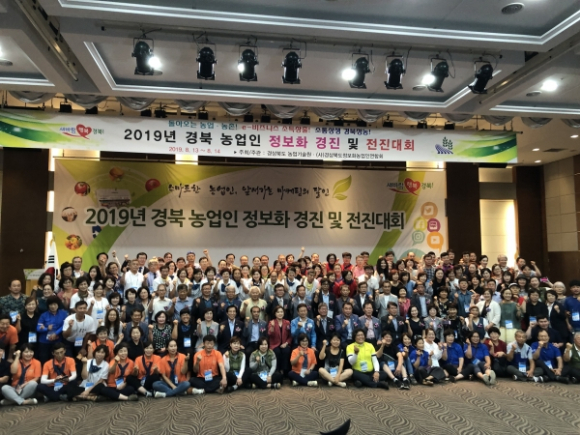 | 사진: 경북 농업인 정보화 경진 및 전진대회 화합한마당 | 이번 대회는 (사)경상북도정보화농업인연합회(회장 윤수경) 소속 농업인 450여 명이 참석한 가운데 ‘SNS 활용 농산물 마케팅 활성화 경진’ 등 6개 분야에서 경진을 펼쳐 우수 사례 26점을 시상했다.