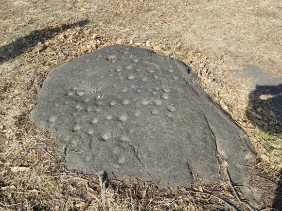다시 차를 몰고 1킬로미터 정도 떨어진 녹문리로 향했다. 여러 번 와본 적이 있는 녹문리 남파정(亭)에 차를 세웠다. 옛날에는 정자 주위로 해자를 파서 물길이 흘렀으며 둘레에 소나무들이 아름다운 아담한 정자였다고 한다. 지금 정자는 무너지고 소나무는 잡목에 가리어 기진맥진하고 해자의 수로는 쓰레기로 채워져 있다. 이만유 회장을 따라 정자자리 바위에 올라 마른 덩굴을 걷어내니 수십 개의 구멍돌이 얼굴을 드러냈다. 정자를 짓고 뜯는 과정에서 파괴되었는지 아니면 농지를 넓히려고 중장비로 옮겨놓았는지 다소 무질서하게 구멍돌이 엉켜있다. 덩굴을 헤치면서 구멍을 헤아려보니 족히 100여개나 되는 은하수 별이 쏟아지는 듯하다. 이러한 구멍돌들이 수천 년 전부터 있었다는 사실도 신기하지만 이만유회장처럼 애향심 있는 분들이 있었기에 장엄한 모습을 세상에 전할 수 있는 것이다.