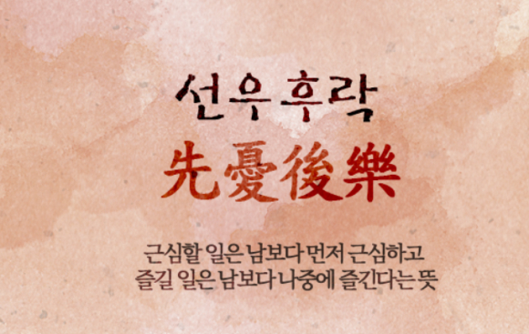'天下之憂而憂(선천하지우이우) 後天下之樂而樂(후천하지락이락)'