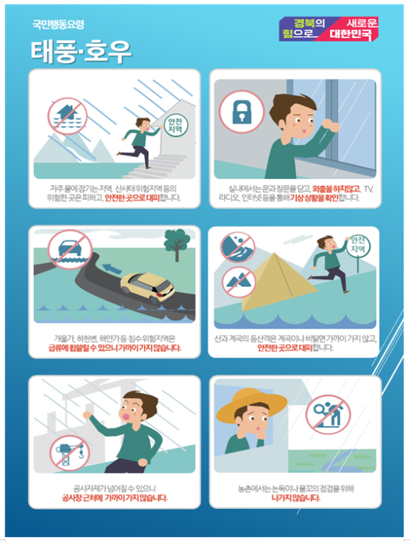 지금까지 강풍 및 집중호우에 대비해 타워크레인 고정ㆍ결박(46건), 임시가설물 등 고정ㆍ철거(178건), 배수펌프장 정비ㆍ점검(125개소), 어선결박(3216척), 양식장 보호망 설치(62개소) 등을 진행했다. ※산사태(5,025개소),급경사지(1,942개소),산지태양광(1,503개소),재해예방사업장(230개소), 예‧경보시설(3,664개소),저류시설(14개소), 소규모(15,693개소), 산불피해지역 산사태 우려지역(60개소), 급경사지(1,021개소), 오탁방지망(10개소)‧사면 방수포(10건)설치, 산지연접 임시침사지(30개소)설치,피해목(6,000본)제거 등 일제 점검 완료