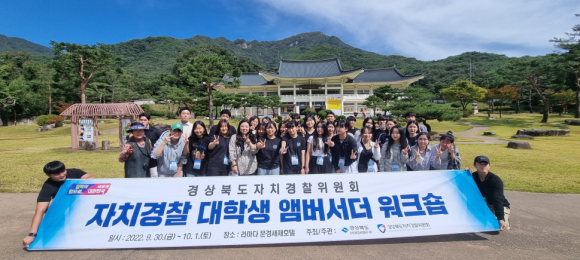 경상북도 자치경찰위원회(위원장 이순동)는 지난달 30일부터 10월 1일까지 1박 2일간 라마다 문경새재호텔에서 경북자치경찰 대학생 앰버서더 40여명이 참석한 앰버서더 역량 강화 워크숍을 개최했다.