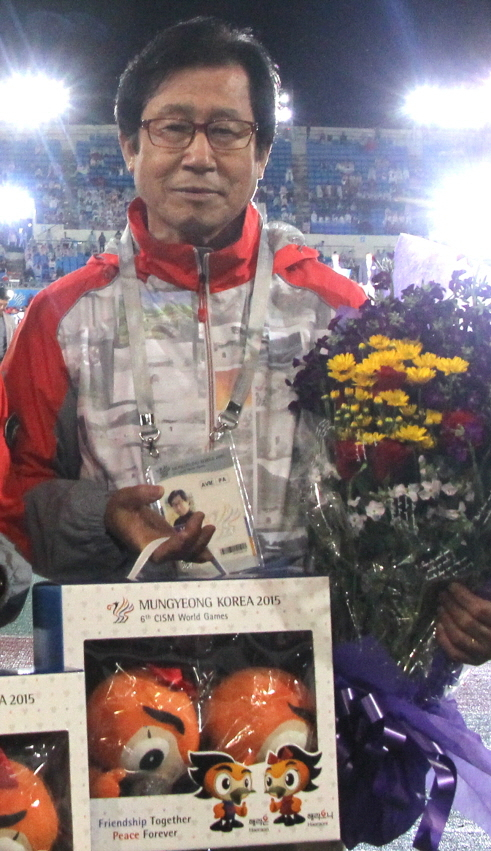 그러고 보니 군인체육대회와 나와의 인연은 조금은 특별하고 남다른 의미가 있었다. 2010년에 있었던‘2015 세계군인올림픽의 성공적인 유치를 위한 시민 대토론회’에서 시민 자격으로 의견을 발표하였고, 개최지 시민으로서 작은 역할을 하기 위해 문경구곡원림보존회 회장을 맡고 있을 때 회원 일동 이름으로 세계군인체육대회에 100만 원 성금을 냈으며, 대회 시 자원봉사자로서 활동하고 폐막식 때 참가 선수 대표와 압둘하킴 알시노 CISM 회장으로부터 자원봉사자들을 대표해서 ‘감사의 꽃다발’과 대회 마스코트 인형을 선물 받았으며, 문인으로서 대회의 성공적인 개최를 기원하는 염원시와 대회개최 축시를 써서 문학으로 군인체육대회를 홍보하였기 때문이다.
