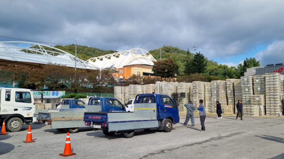 문경시는 사료가격 폭등과 한우가격 하락 등 축산농가의 고충을 해결하기 위해 지난 11일부터 13일까지 3일간 시민운동장 주차장에서 문경시 관내 소, 염소 등을 키우는 568농가에 사업비 10억여원을 들여 양질의 풀사료인 연맥, 톨페스큐를 1,656톤 공급했다.