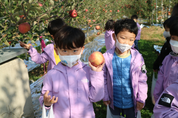 사과 따기 체험에 참여한 유아들은 나뭇가지가 다치지 않게 따는 방법, 잘 익은 사과를 구분하는 방법 등 사과 딸 때의 주의사항에 대해 설명을 들은 후, 직접 빨갛게 익은 사과를 따보는 시간을 가졌다. 사과 따기 체험을 끝낸 유아들은 문경새재로 이동하여 전동차를 타고 시원한 가을 바람을 느끼며 알록달록 단풍으로 물든 경치를 감상한 후, 미로공원에서 따뜻한 햇살을 만끽하며 즐겁게 뛰어놀았다. 문경유치원은 앞으로도 다양한 자연 체험 활동의 기회를 제공하여 유아들이 자연과 함께하는 즐거움을 느끼며 자연을 소중히 하는 마음을 가질 수 있도록 도울 것이다. |