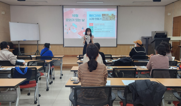 이번 문화가 있는 날에는 지역주민 30명을 대상으로 캘리그라피 기본을 배우고, 탁상시계를 캘리그라피로 꾸며보면서, 가을 감성을 느끼는 「캘리그라피 시계 만들기」 체험과 도서를 2배로 빌릴 수 있는 「수북드림(水 book dream)」, 「인스타그램 팔로우 선착순 이벤트」, 「스마트도서관 선착순 이벤트」를 운영하였다.