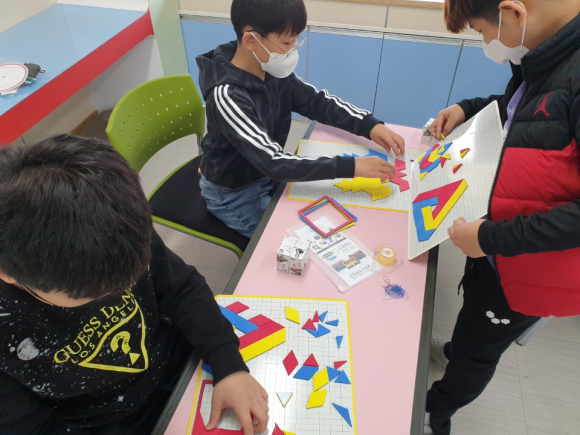 이번 수학체험교실은 수학전문업체에 위탁하여 1~3학년, 4~6학년 두 그룹으로 나누어 각 그룹별 수준에 맞는 4개의 수학 프로그램을 각각 구분하여 운영하였다. 1~3학년은 매쓰맥 정다각형, 수학시계, 칠교 탬버린, 스트링아트 미니 4종, 4~6학년은 매쓰맥 솔리드, 매직큐브, 스트링아트 수학시계, 정다면체 듀얼 4종을 통해 수학에 대한 호기심을 불러 일으켜 개인의 창의성 계발에 도움이 되는 시간을 가졌다.