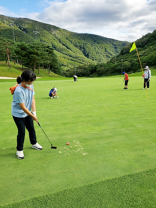 골프캠프에 참가한 김모 학생은 “필드에서 골프를 치는 것이 무척 신나며, 홀에 공을 넣었을 때는 정말 심장이 두근거릴 정도로 좋았다. 골프 연습을 계속 열심히 하여 다음엔 더 잘하고 싶다.” 는 소감을 남겼다. |