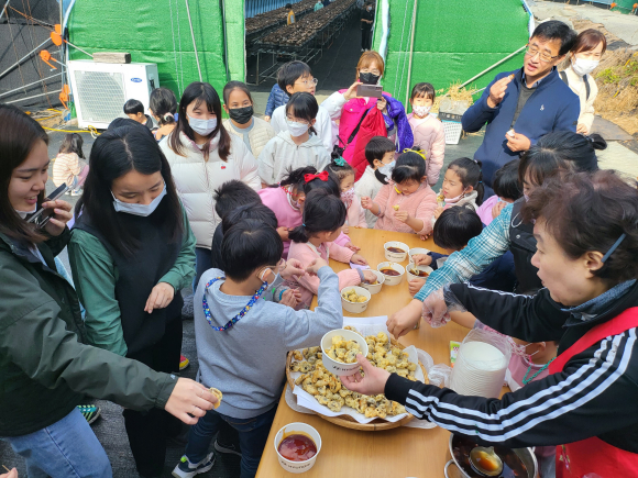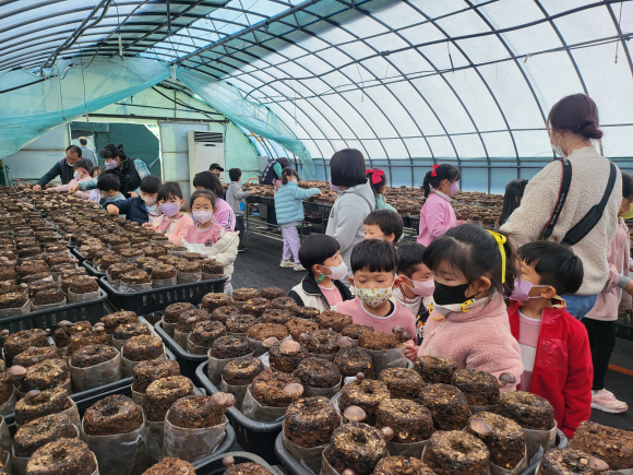 버섯 재배 방법과 곰팡이, 포자에 대한 설명을 듣고 표고버섯으로 만든 탕수육을 먹어보고 버섯을 수확하는 시간을 가졌다. 이번 현장체험학습을 통해 유치원 유아들과 초등학교 학생들은 버섯을 편식하지 않고 버섯을 먹는 건강한 어린이가 되겠다고 약속했다. |