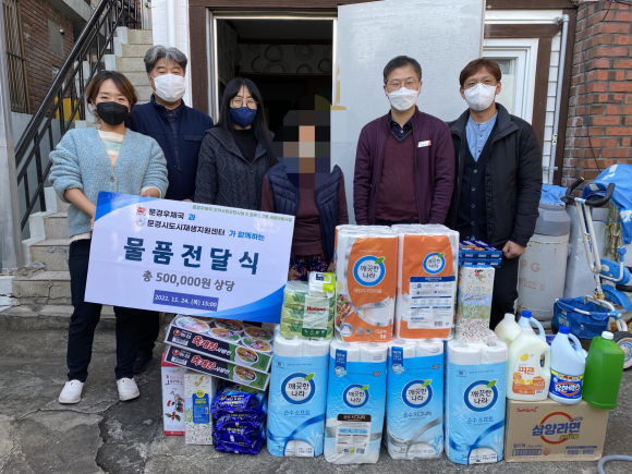 특히, 이번 지역사회 공헌사업 물품 전달에는 문경시도시재생과 및 ‘2022 새뜰빌드업 프로젝트’에 참여하는 주민조직에서도 동참해 더욱 뜻깊은 전달식이 되었다.