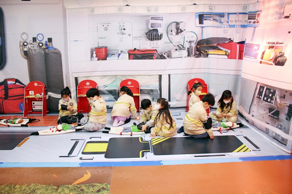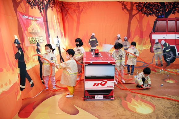 이번 안전체험교육은 산불진화대가 되어 소방호스를 연결하여 산불 진화 해보기, 숲과 건물에 남은 잔불 꺼보기, 숲 근처 집에 난 불끄기 활동을 진행하였다. 또한 구급대원이 되어 환자(인형)를 들 것으로 이송하고 치료해주는 등 응급 구조 활동을 해보는 역할 놀이를 체험하는 유익한 시간이 되었다. 안전체험교육에 참여한 만3세 강〇〇은 “연기가 피어올랐을 때 무서웠는데, 잘 대피해서 기분 좋았어요.”, 김〇은 “아빠처럼 불을 끄는 멋진 소방관이 되고 싶어요!” 라고 말하며 의미있는 시간을 가졌다. 성태기 원장선생님은 “이번 안전체험교육을 통해 유아들이 최근 많이 발생하는 산불에 대해 알아보고, 진화‧구조하는 상황을 체험해봄으로써 위기 상황 발생 시 스스로 자신의 몸을 보호할 수 있는 유아들로 자라나기를 바랍니다.” 라고 말했다. |