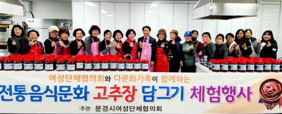 | 문경시여성단체협의회(회장 김명자)는 12월 13일 여성회관에서 다문화 가정 이주 여성들과 함께 고추장 담그기 체험 행사를 진행했다.