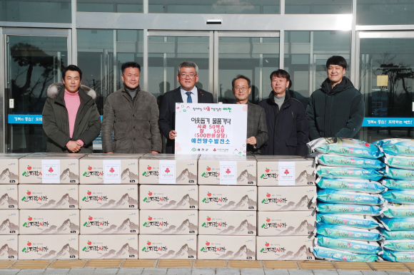 예천양수발전소(소장 박승철)에서도 어려운 이웃에게 전달해 달라며 쌀 20kg 50포와 사과 10kg 50박스(시가 500만 원 상당)를 전달했다.