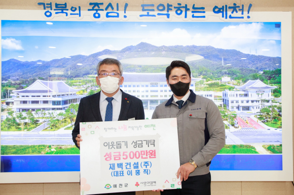 예천교회(담임목사 김영수)에서 성금 100만 원을 추운 겨울 힘들게 견뎌내고 있는 이웃을 위해 써달라며 기탁했으며 재백건설(주) 이홍직 대표도 예천군청 500만 원, 호명면행정복지센터 300만 원을 각각 전달했다. 특히, 이홍직 대표는 지난 SEMI 곤충엑스포 2022 예천곤충축제에도 1,000만 원을 기탁하는 등 꾸준히 기부를 이어오고 있다.