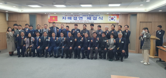 [포토뉴스] 문경시는 23일 11시 제2회의실에서 신현국문경시장, 황재용문경시의회의장, 시의원, 베트남라이쩌우성대표단이 참석한 가운데 양지자체간에 관광, 문화, 경제 등 상호협력을 위한 자매결연 체결식을 가졌다.