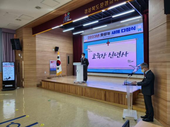 경상북도문경교육지원청(교육장 김현오)은 1월 2일(월) 교육지원청 대회의실에서 전 직원이 참석한 가운데 2023년 계묘년 새해를 맞아 새해 다짐식 및 반부패 청렴서약식을 실시했다.