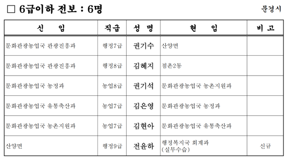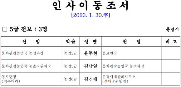 문경시 인사이동조서[2023.01.30자]
