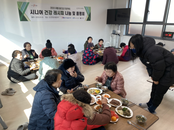 시니어 건강 레시피 개발을 통한 지역 돌봄서비스 실현을 목적으로 모인 참가자 10여 명은 그동안 개발한 레시피를 이용해 오곡밥, 수육, 과일 등으로 구성된 식사를 준비하여, 방문하신 어르신과 함께하고 독거노인 등 거동이 불편한 주민들을 위해 집집이 직접 방문하여 도시락을 전달하는 등 따뜻한 사랑을 전했다.