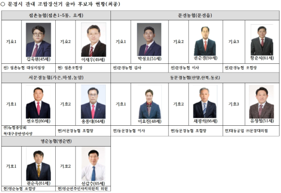 - 문경지역 농협,축협,산림조합장후보 등 16명 등록마감 -