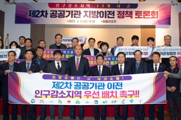 문경시는 3월 3일 충북 제천시가 주관하고, 인구감소지역(문경시, 고창군, 공주시, 논산시, 단양군, 동해시, 제천시, 밀양시, 봉화군, 상주시, 안동시, 영월군, 태안군) 13개 시군이 공동으로 주최하여 혁신도시 위주로의 공공기관 이전 정책에 대응하기 위해 마련된 정책 토론회에 참석했다.