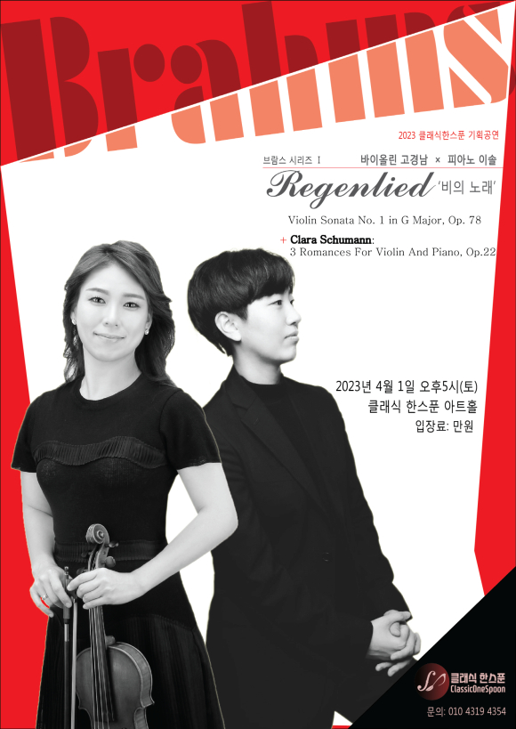 문경시의 클래식 단체 <클래식 한스푼>은 오는 2023년 4월 1일 토요일 오후5시에 클래식한스푼 아트홀에서 기획공연 ‘브람스 시리즈 I’을 개최한다.