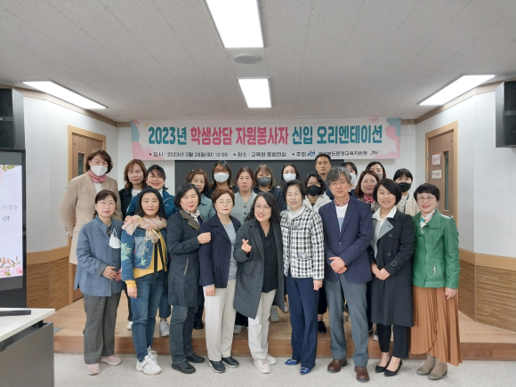 경상북도문경교육지원청(교육장 김현오) Wee센터에서는 2023. 3. 28.(화) 관내 학생상담자원봉사자 기존회원 및 예비 36기 회원 10명을 대상으로 『문경지역학생상담자원봉사자연합회 신입 오리엔테이션』을 실시하였다.