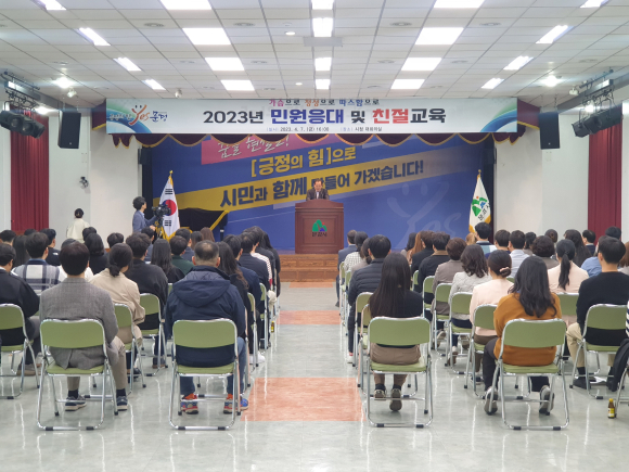이번 교육은 전문 강사를 초빙해 다양한 민원 유형별 대응과 친절방법 등을 배우고, 민원처리 담당공무원의 친절서비스 이행 방법과 고객 응대법을 제시함으로써 민원 만족도를 높이고자 마련하였다.