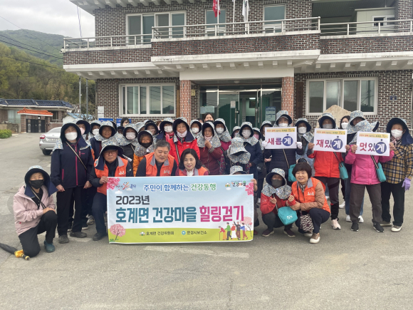 올해 3년 차에 접어든 호계면 건강마을은 주민이 함께 마을의 문제를 스스로 해결해 나가는 주민 주도형 마을로서 건강위원회 운영, 건강동아리 활동, 마을 꽃밭 조성, 수세미 뜨기 등을 하여 이웃 간 나눔 행사를 실시하는 등 다양한 활동으로 교류하며 건강한 마을 공동체로 기반을 조성하고 있다.
