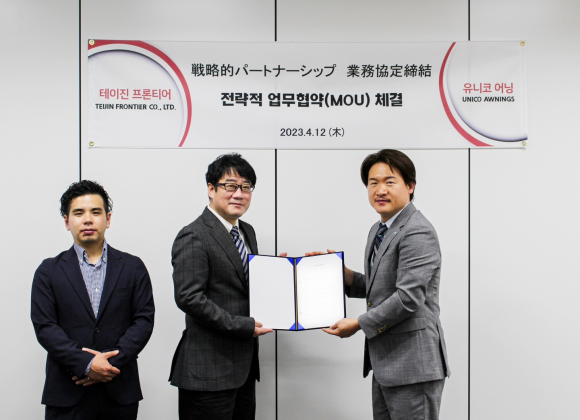 경북소재에 있는 차양막 제조업체인 유니코어닝(Unico Awnings)와 일본의 대형 기업 Teijin Frontier가 2023년 4월 12일(목) 전략적 업무협약을 체결하였다.