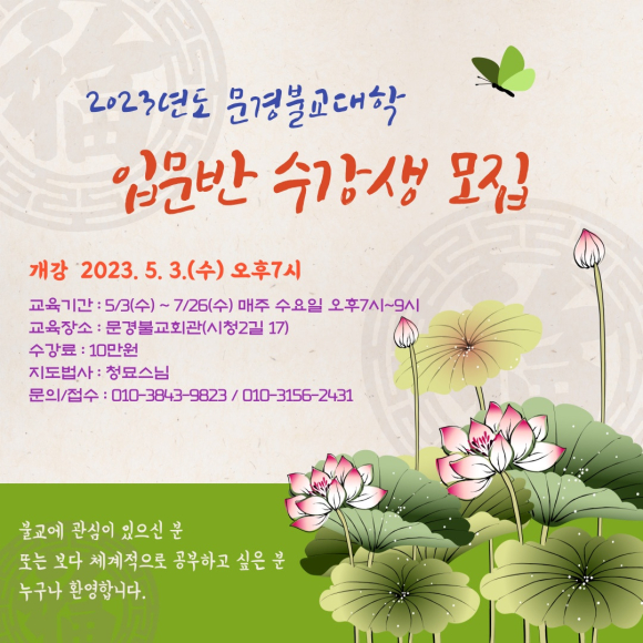 문경불교대학, 입문반 수강생 모집